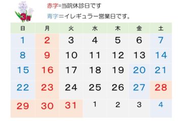 📅3月の営業予定(市川市の整体院)