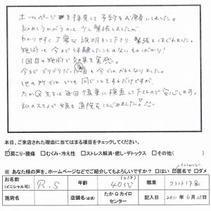 肩こり・腰痛でお悩み合ったRSさん40代女性作家