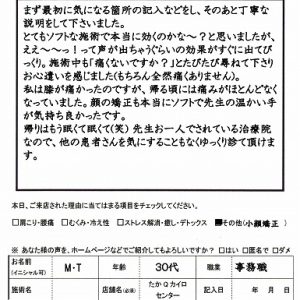 肩こりも初回で変化を感じて頂きました。
