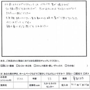 首の変な音が1回で良くなったHMさん33歳女性